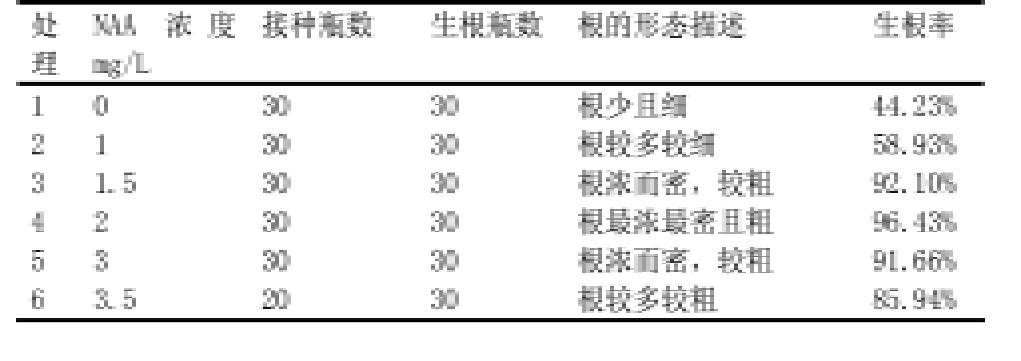 2.1.1.不同NAA浓度对云蔗99-601茎尖脱毒苗生根的影响列在表1。