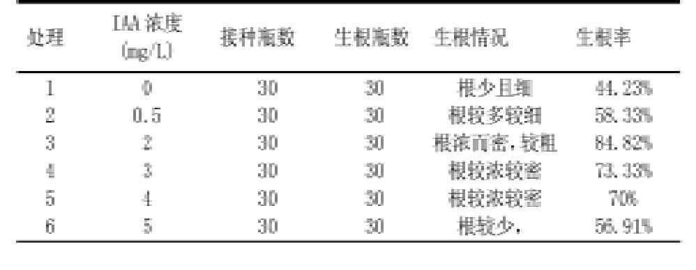 表2不同浓度的IAA对云蔗99-601茎尖脱毒苗生根的影响