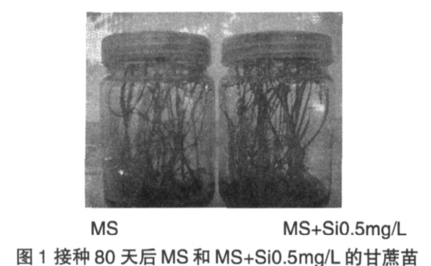 按保绿来看:接种80后天以MS+ Si0.5mg/L的效果最好,苗绿少,明显地苗壮,与其它浓度对照差异非常明显;